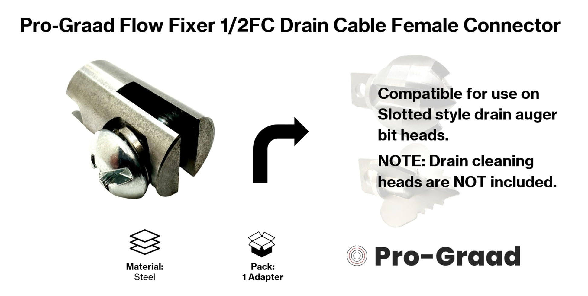Pro-Graad 1/2FC Flow Fixer | 1/2” Drain Cable Repair End | Weld-On Female Slotted Connector Bit for Broken Drain Cleaning Machine Cables | Fits All 1/2” O.D. Drain Cables