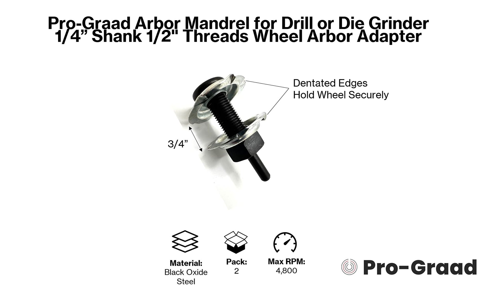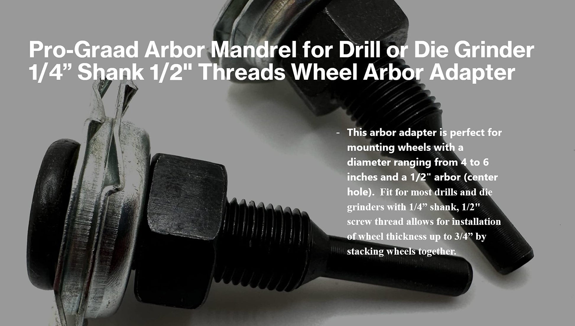 Pro-Graad Arbor Mandrel for Drill or Die Grinder 1/4” Shank 1/2" Threads Wheel Arbor Adapter for Mounting 1/4” up to 3/4” Wide Buffing Grinding and Polishing Wheels with 1/2” Center Hole | 2 Pack